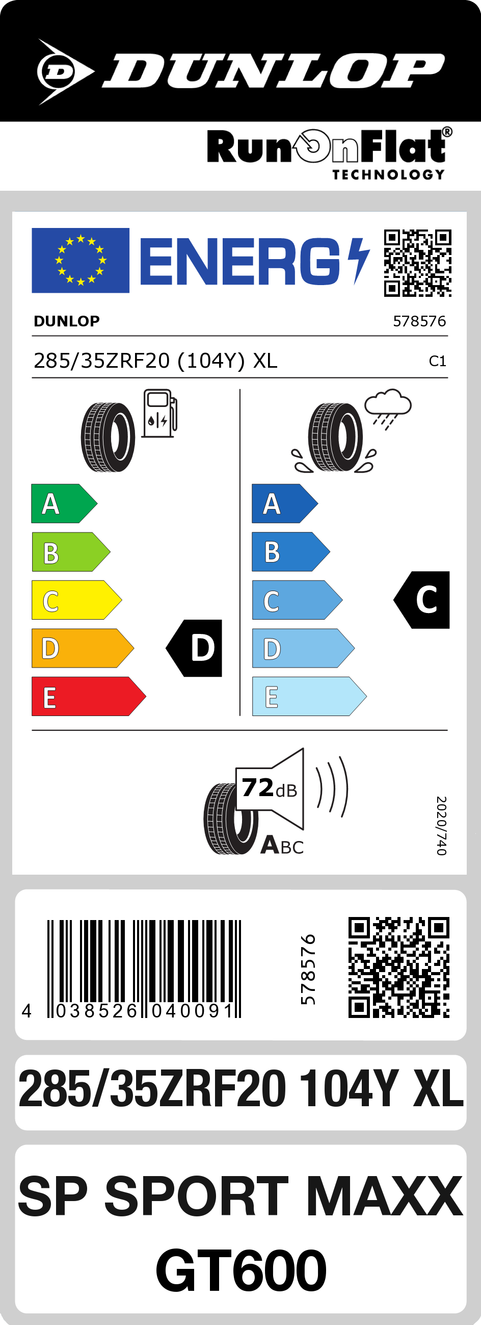 Pneu DUNLOP SP Sport Maxx GT600 285/35R20 104Y XL