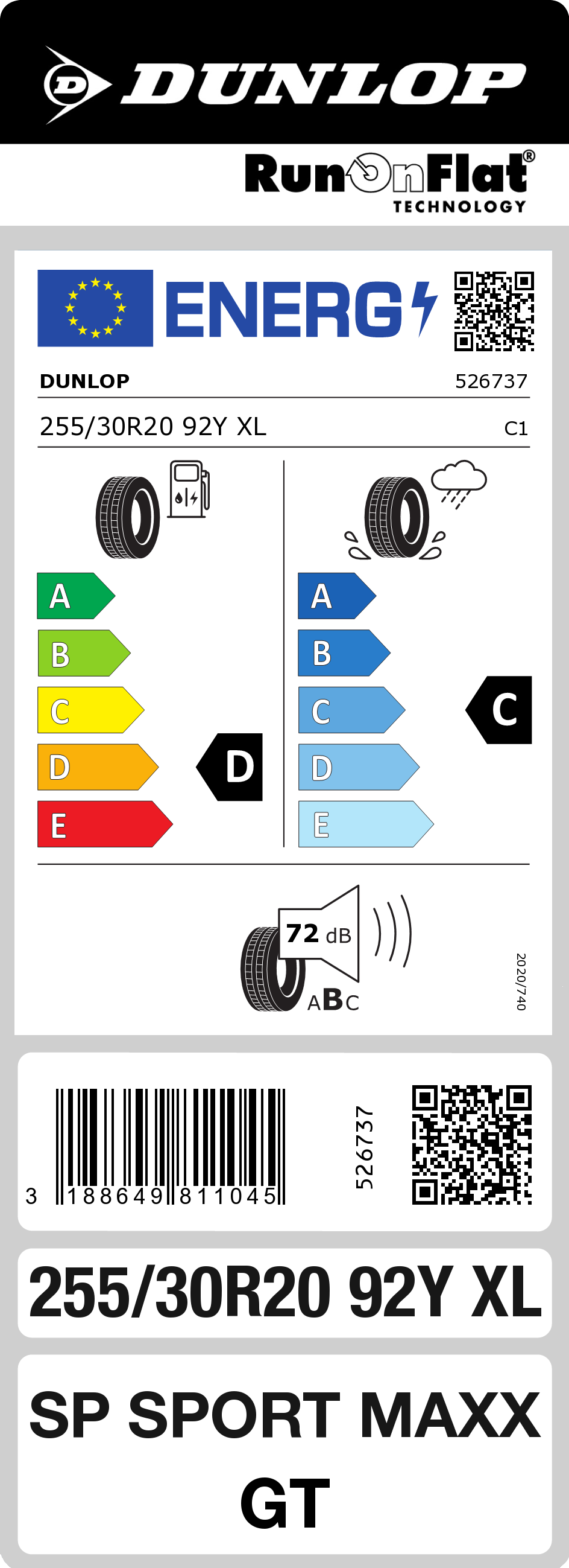 Pneu DUNLOP SP Sport Maxx GT 255/30R20 92Y XL