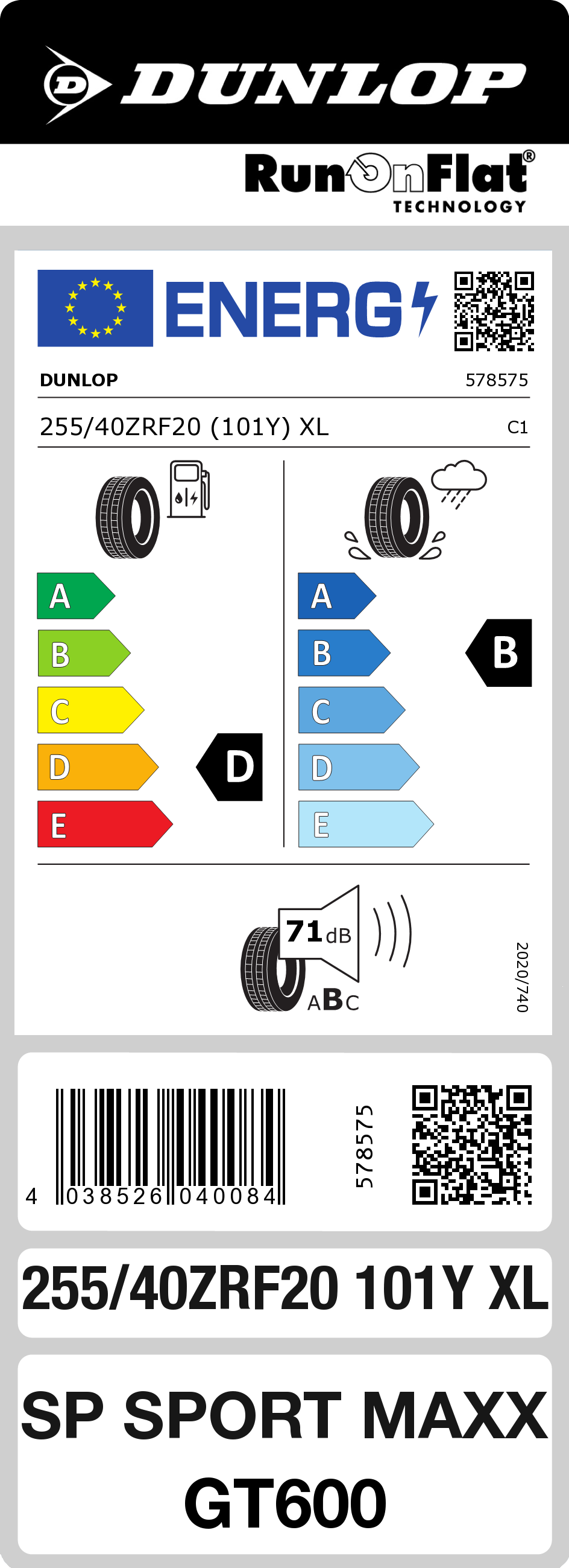 Pneu DUNLOP SP Sport Maxx GT600 255/40R20 101Y XL